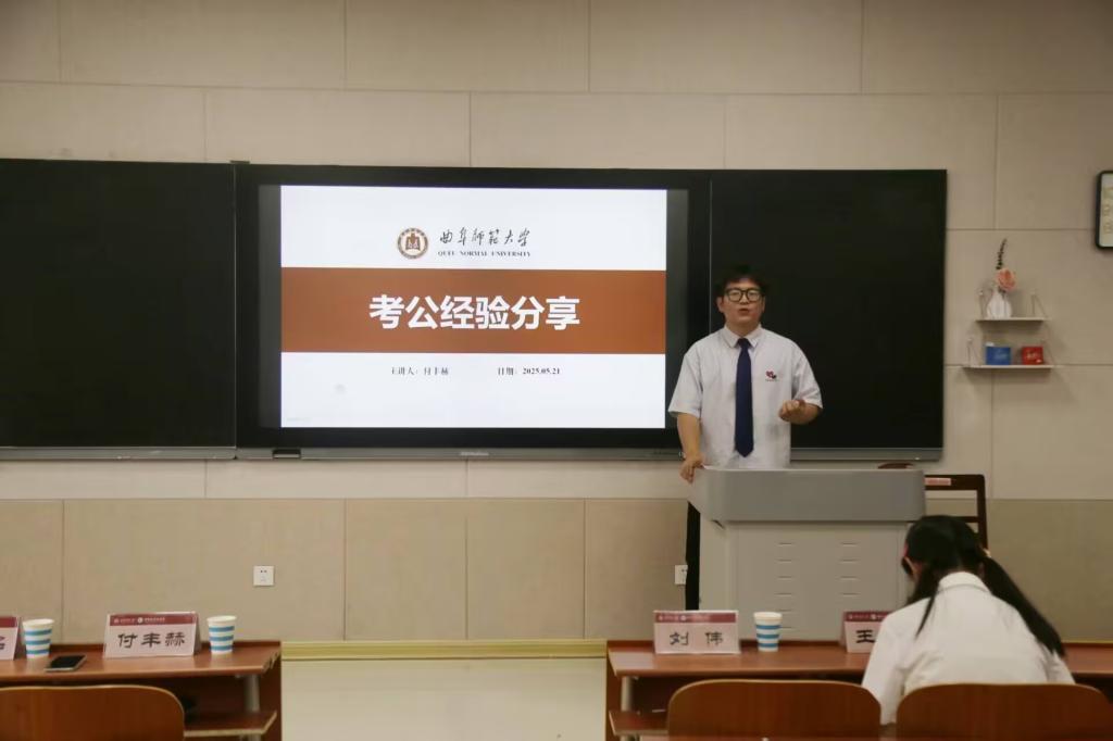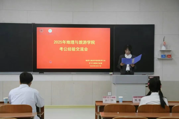 考公经验交流会。本次活动由学院团委学生会学习与国际交流部承办,黄潇逸主持,2025届毕业生考公考编上岸的优秀毕业生代表王香月、刘书铭、付丰赫受邀进行经验分享,2022级、2023级学生积极参与。