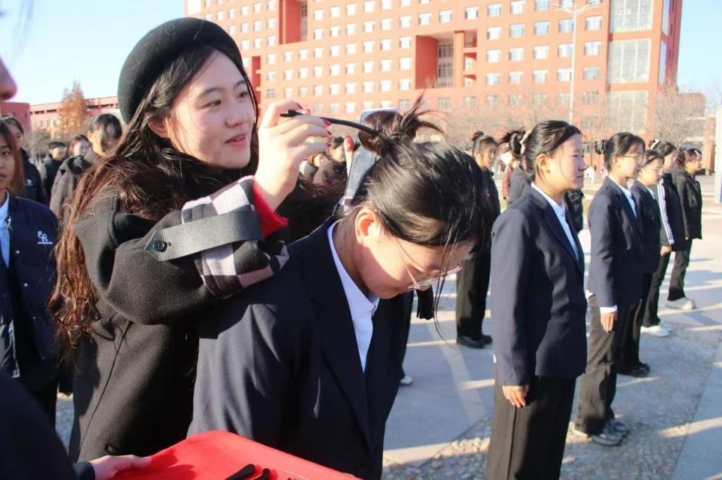活动伊始,学子们共同追溯汉族冠礼、笄礼的千年文脉,并了解成人礼承载的文化内涵与时代意义。随后,董青向全体学子送上成年祝福。她勉励同学们以成年为新起点,树立远大理想,涵养优良品德,不负韶华时光。学生代表王新童分享成长感悟与成年期许。她表示,青年学子应秉持“诚实做事,踏实做人”的信念,在时代征程上稳步前行,让“犁牛之子”的坚韧品格绽放光彩。加笄仪式上,李梅、董青为参礼成员加笄,学子们共同面向孔子像行揖礼,为本次成人礼画上圆满句号。