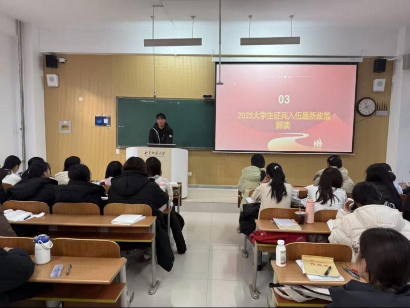 此次主题班会的内容主要包括三部分:观看国防安全教育宣传片、学习大学生国防教育的必要性与重要性、了解2025年大学生征兵入伍的最新政策解读。各班班长详细阐述了国防教育的重要性及其必要性,并介绍了大学生征兵入伍的最新标准及相关注意事项。会议期间,同学们认真聆听,深刻体会到了国防安全教育的重要意义。
