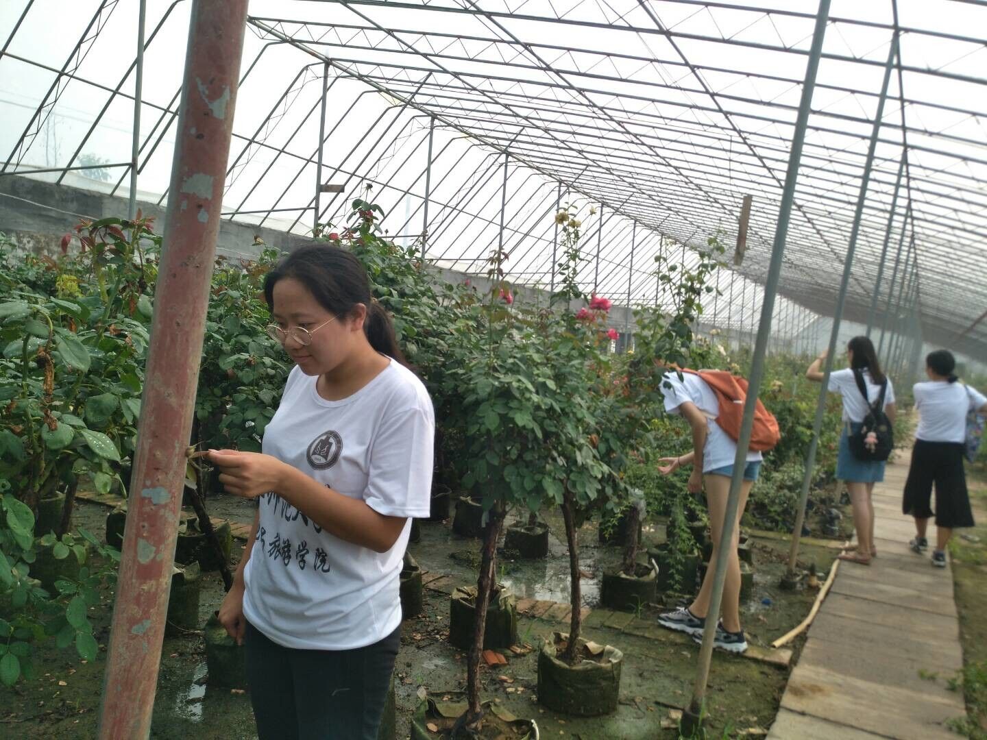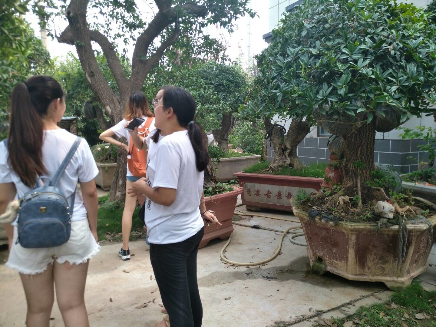 814日九州花都实践队来到了位于山东青州的夏洛店高级花卉园区。这里的居民大都在自己家中的院子或者大棚里种植大量的高级花卉,品种繁多,郁郁葱葱,有香气逼人的桂花树,还有幸福树、发财树等,寓意美好。这里的居民热情好客,细心地为成员们讲解有关高级花卉的栽培与修剪的知识。通过他们了解到,桂花的品种不同,开花期也不同。有的四季常开,有的则只在秋天开放。而高级花卉后期的修剪与组合非常重要,草花造景必须符合统一、谐调、均衡和韵律的构图原则。谐调就是在草花造景时,利用不同草花的近似性和一致性,表达出谐调的柔美之感。而利用草花的差异和变化,可以产生强烈的视觉刺激,烘托出欢快、热烈的氛围。