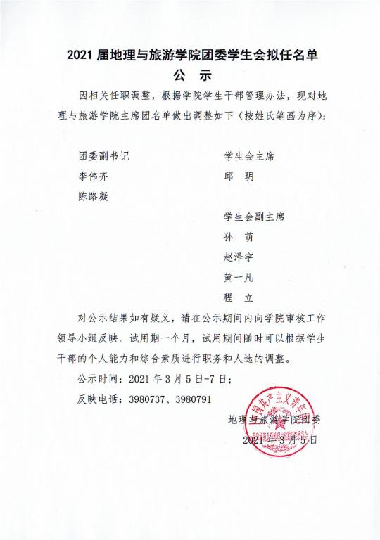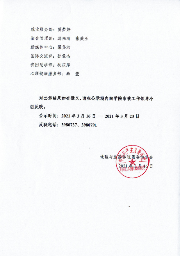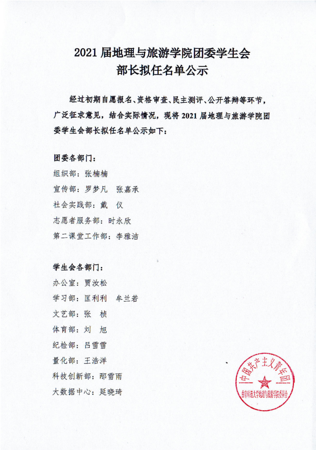 2021届电影天堂 团委学生会副部长拟任名单公示