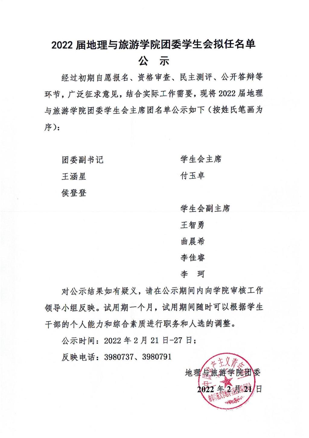 2021届电影天堂 团委学生会副部长拟任名单公示