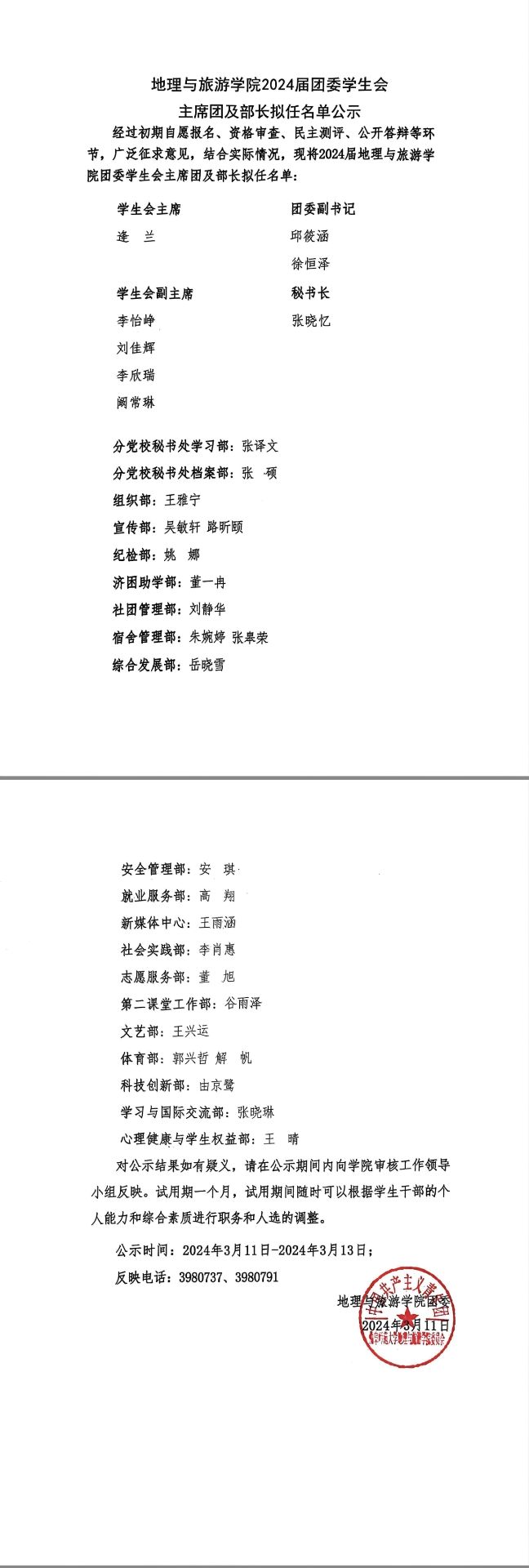 电影天堂 2024届团委学生会主席团及部长拟任名单公示