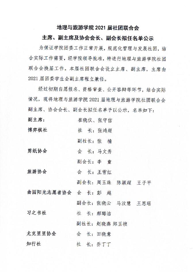 2021届电影天堂 社团联合会换届公示