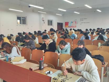 现场书法大赛分为软笔和硬笔两类,并围绕“中华传统诗词”主题进行书写相关内容。活动伊始,由社长赵琪介绍本次比赛的流程和规则,参赛者在规定纸张上完成书写。软笔书法选手下笔或苍劲有力,或娟秀清雅,各展其美;硬笔书法选手全神贯注,挥毫笔墨,刚劲的笔触中透露出对书法的执着与热爱,充分展现了同学们扎实的书写技能与深厚的文化底蕴。比赛现场洋溢着淡淡的墨香,同学们认真书写,笔画流畅,沾墨、提笔、运笔,每个动作都倾注着对书法的无限热爱。12月4日下午由专业老师周维国进行作品评选工作,选出了一等奖10名、二等奖17名、三等奖26名以及优秀奖若干,充分肯定了师范生在书法技能上的卓越表现。