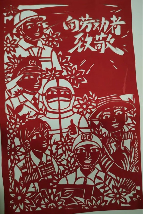 活动自5月1日启动至5月5日创作结束,参赛同学们以剪刀为笔、红纸为卷,围绕劳动主题展开创作。他们巧妙构思,将对劳动者的敬意融入剪纸作品中,有的刻画辛勤耕耘的农民形象,有的描绘坚守岗位的教师身影,还有的展现奔波忙碌的医护人员风采。每一幅作品都兼具艺术美感与主题深度,充分体现了同学们对劳动价值的深刻理解。也是一次特殊的劳动教育。