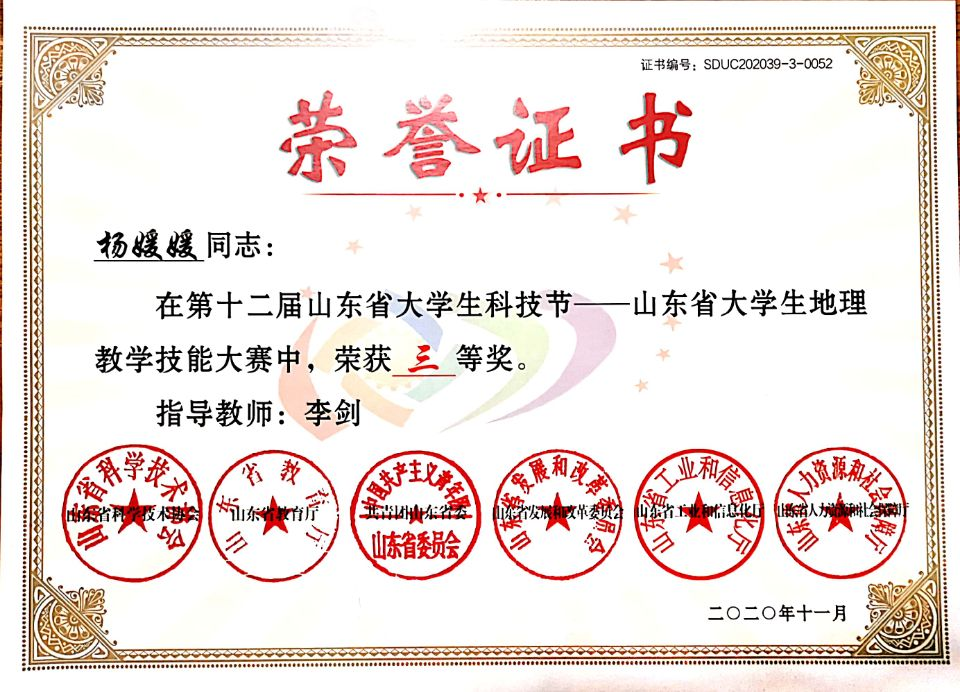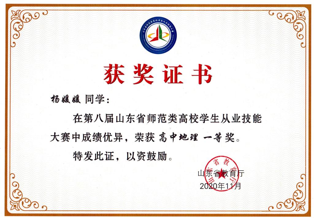 在专业技能方面,第八届山东省师范类高校学生从业技能大赛一等奖,十二届山东省大学生科技节地理教学大赛三等奖,电影天堂