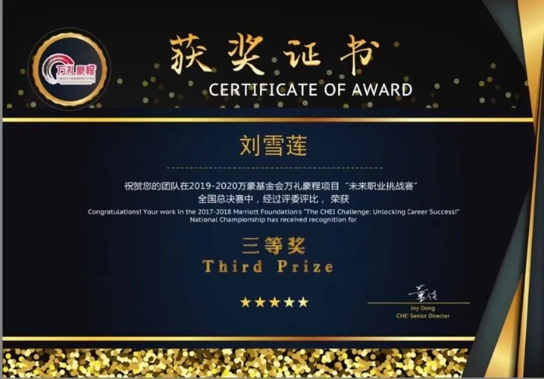 获奖奖项:万礼豪程全国大学生未来职业挑战赛全国总决赛三等奖