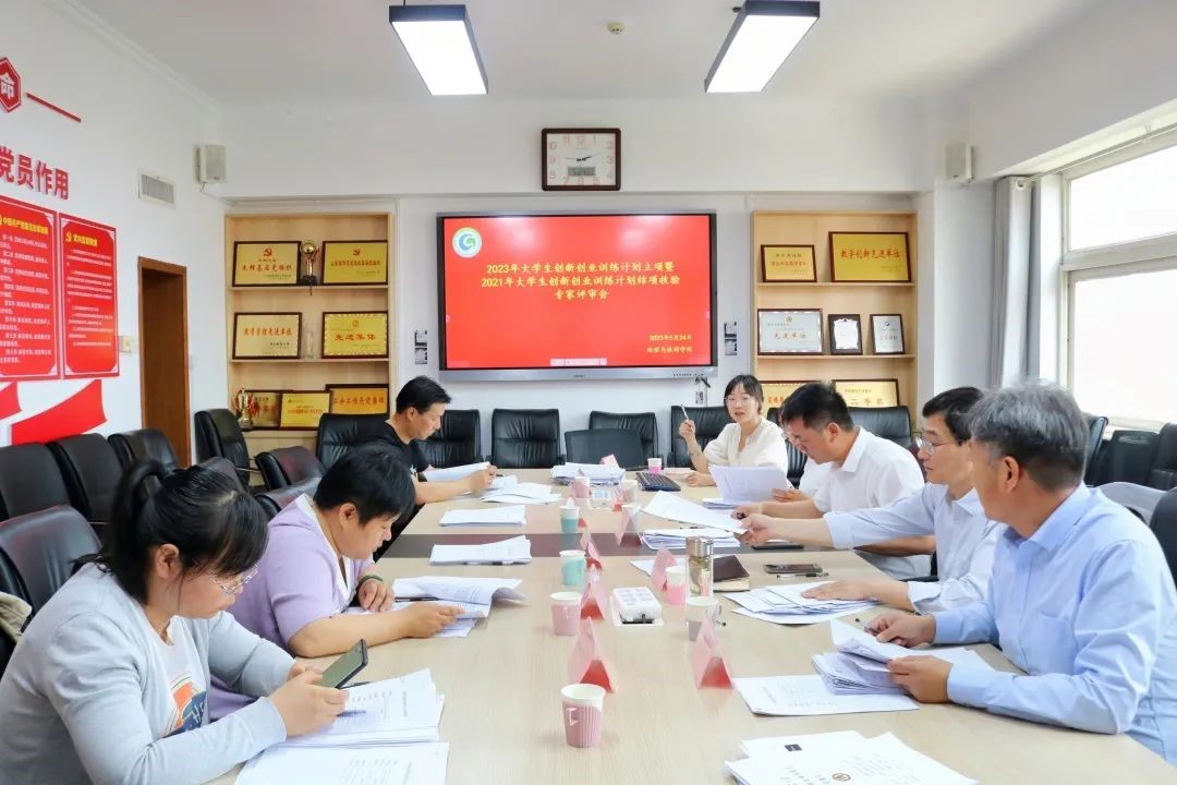 于会馆2401举行2021年大创结项和2023年大创立项专家评审会。学院党委副书记刘伟、副院长吴军、各科研室主任和专业老师吕宜平、石峰、王萍、张学波、孙丕玲、陈艳峰、王云倩担任评委,会议由2020级辅导员张乃宁主持。