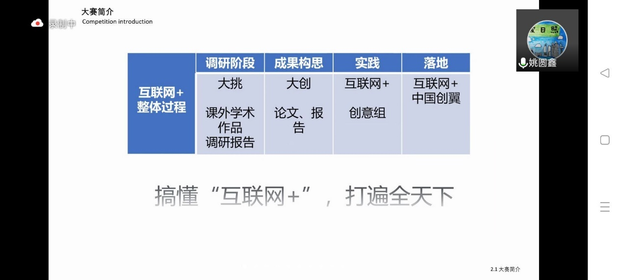 培训会上,姚圆鑫老师首先对大赛进行详尽地介绍,直观地展示出大赛的总体过程、囊括内容、基本要素,并对“互联网+”主赛道展开详细介绍,逐一分析了创意组、初创组、成长组的特点和适宜对象,随后针对前期准备、如何提高可行性、如何有效创新创业等问题提出建议。他也提到近年来“互联网+”奖项倍增,获奖几率增大,鼓励同学们积极参与,希望参赛同学能够把握每一个组别的导向,要紧靠核心方向,选择合适的组别,实现更大的创新创业价值。
