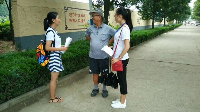 清晨,队员们在研究生刘含嫣的带领下开始了问卷调查。在表明来意后,游客们十分配合地将调查问卷认真客观的填写完整,有些游客看到队员们十分辛苦,主动要求填写问卷,活动进行的十分顺利。下午队员们就调查报告展开激烈的讨论,对调查报告结果进行了整理。随后队伍来到新合村,依据调查结果向村民们普及自媒体旅游知识并结合地理方面的专业知识为村民们解疑答惑。宣讲过程中村民们积极配合,阐述了对日照环境污染变化的看法。村民们表示地理环保知识的普及对改善雾霾天气等大气污染现象有着重要意义。