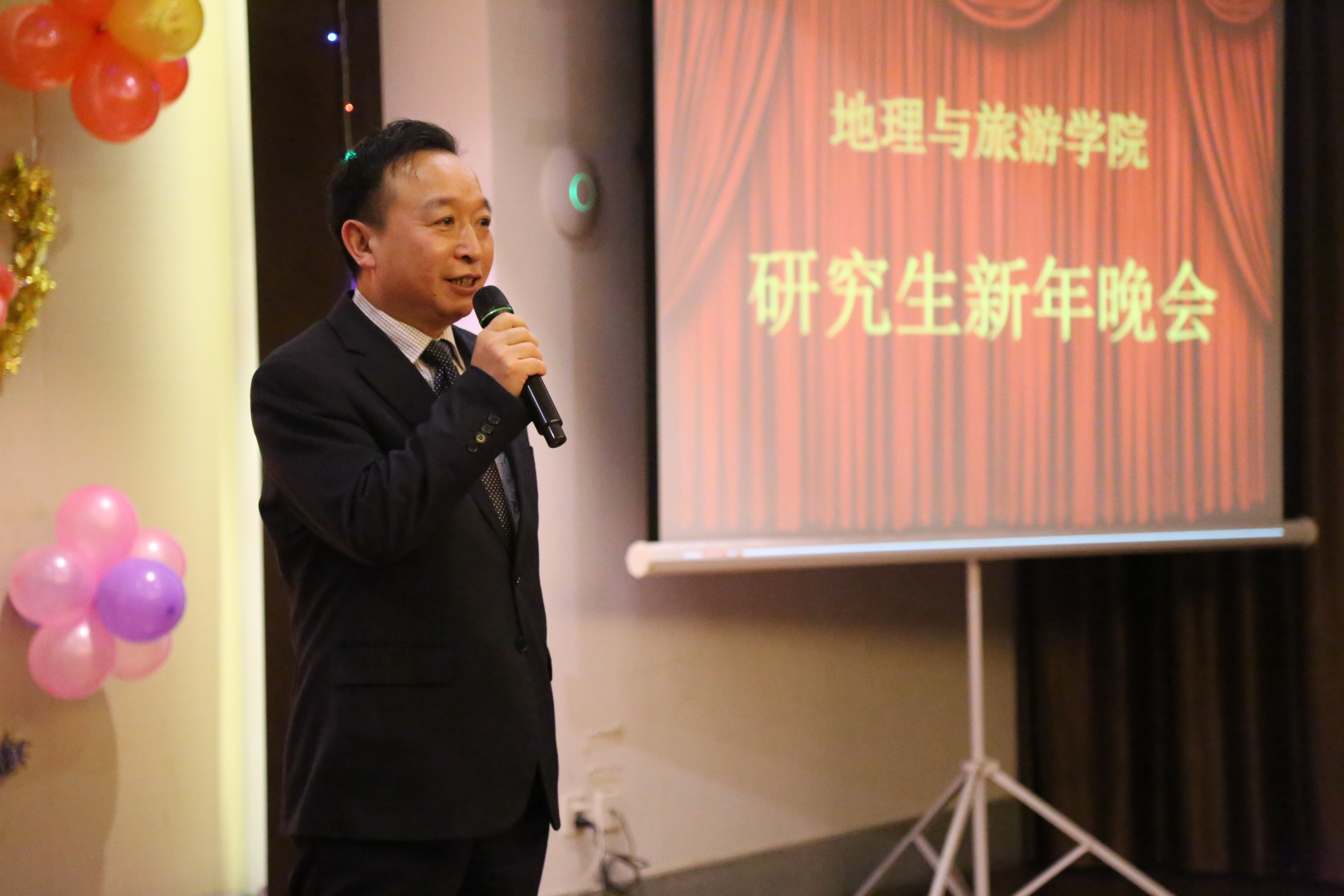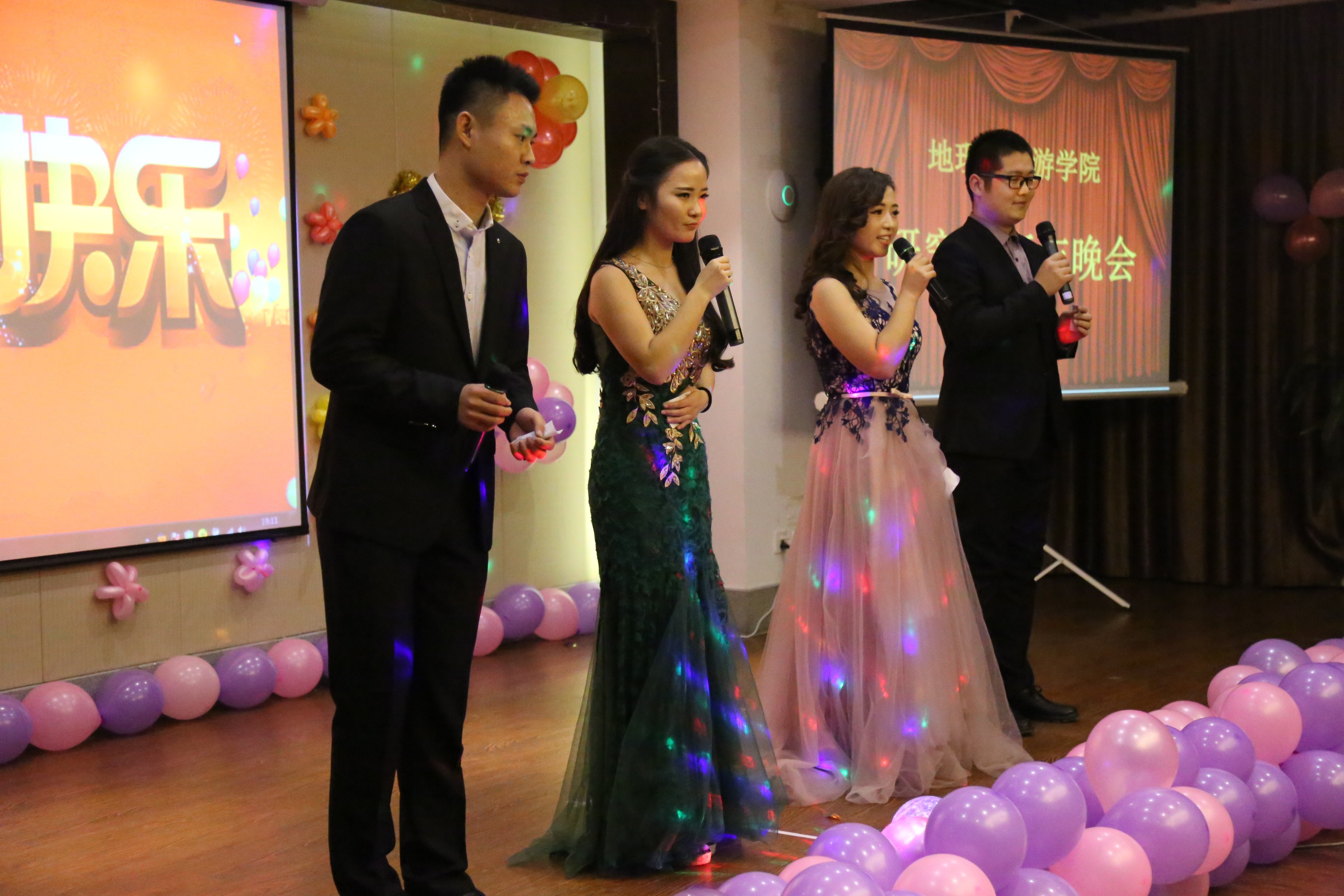 研究生会主办的2016年研究生新年晚会,在儒风酒店“有朋厅”隆重举行。学院党总支书记胡长春、院长代合治、副院长王慧、副院长谢小平亲临现场欣赏节目,出席晚会的还有学院部分老师、全体研究生及本科生代表。