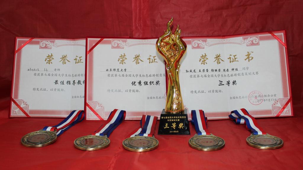 学生王芳蕾、孙威龙、彭丽荣、钟佳和周丹组成的“缘梦红旅”队进入总决赛,并展示了主题作品《走进沂蒙山,重温红嫂情》和四川采风作品《满腔青春血,一曲从军行:川陕革命根据地研学旅行课程》,获得了“再忆鱼水情,重振军旅魂”主题第五名,大赛三等奖的好成绩。同时,我校获得了大赛“最佳组织奖”,指导教师吴军副教授获得了大赛“最佳指导教师奖”。