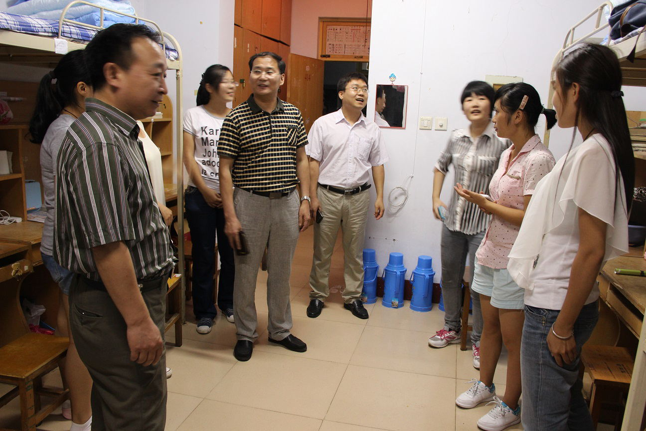 党总支书记胡长春,院长代合治,党总支副书记杨兴防,团总支书记岳峰携学生会主席团对新生宿舍进行了视察,并对同学们的到来表示了热烈欢迎和亲切慰问。