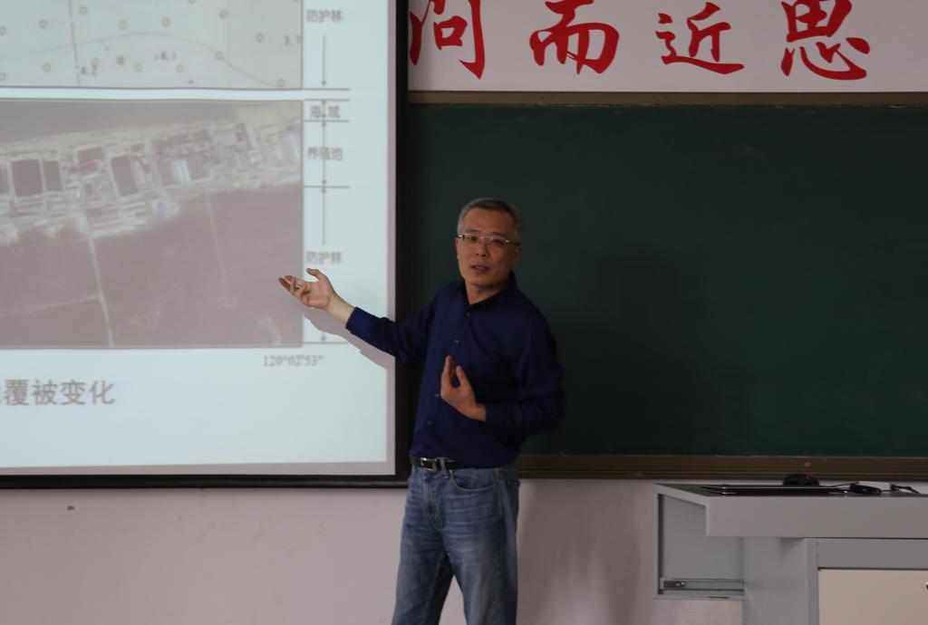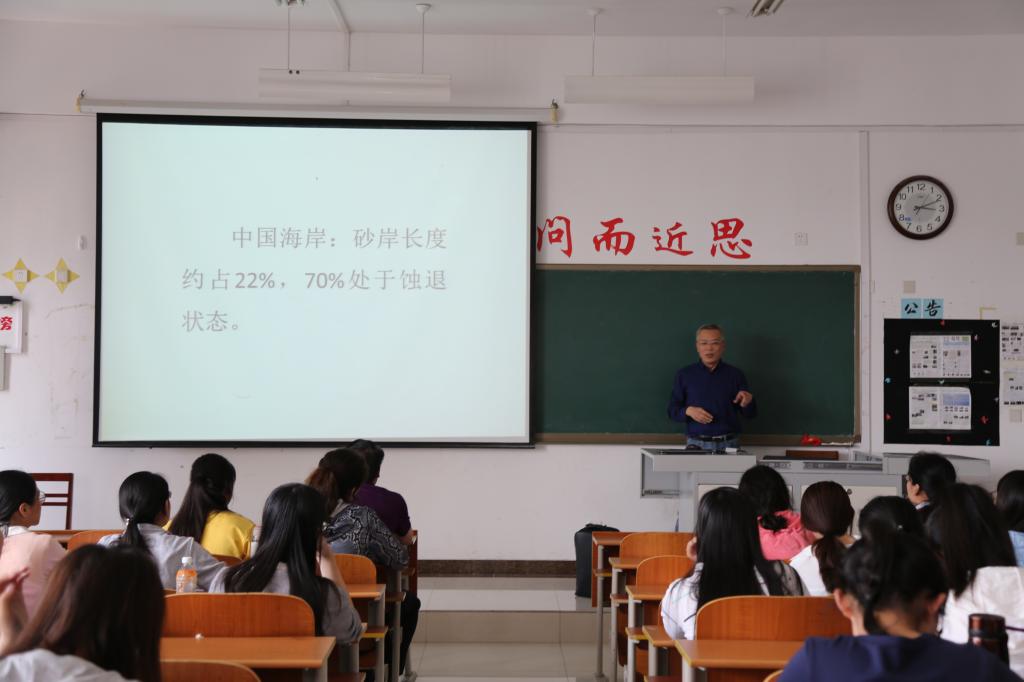 在报告会中,王庆教授多次提出地理学应高度重视野外观测,并且在观测的同时要充分运用自己所学的专业知识。报告结束后,谢小平、谭丽荣等老师和部分同学针对自己的疑惑踊跃提问,王庆教授就潮上带海水养殖与中国海岸线、岸线建堤防护以及海洋牧场等问题进行了深刻解答。