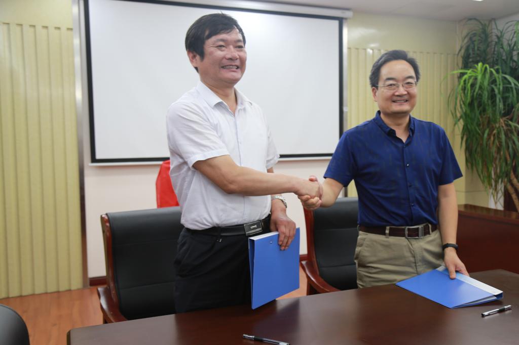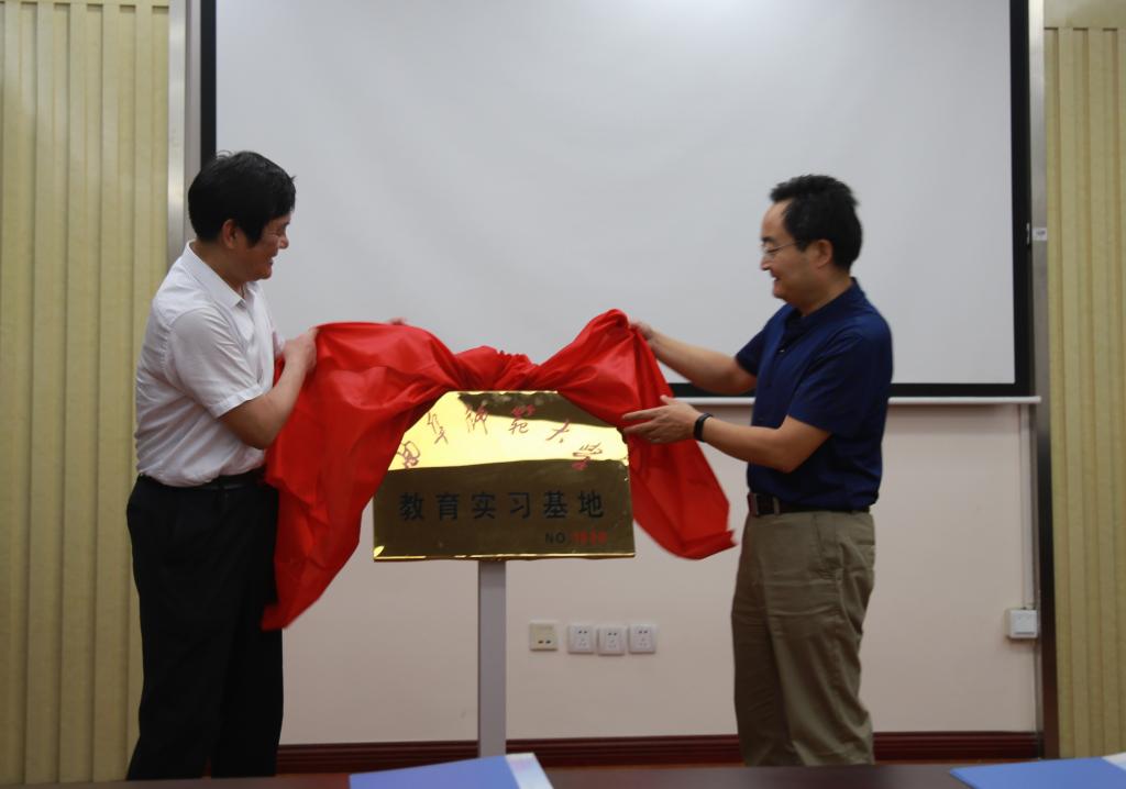 院长张全景与日照市技师学院党委副书记史兴用共同签署了实习基地合作协议,并为实习基地进行了揭牌。