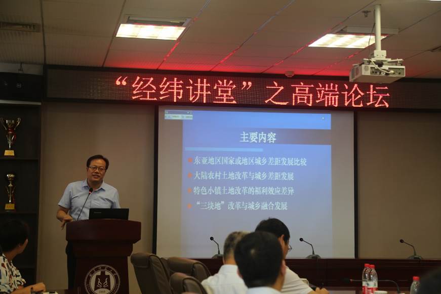 南京大学黄贤金教授做了题为《中国土地制度改革40年与城乡融合的发展之路》的报告,从东亚地区国家或地区城乡差距发展比较、大陆农村土地改革与城乡差距发展、特色小镇土地改革的福利效应差异、农村“三块地”改革与城乡融合发展等多个视角理清了土地制度改革与城乡融合的发展关系,为推动城乡融合发展提供了新思维。