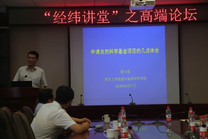 南京大学鹿化煜教授以《申请自然科学基金项目的几点体会》为题进行了报告,从申请基金项目的目的、撰写申请书应该注意的问题、执行项目应该注意的问题等多方面给予了参会老师和同学们指导。