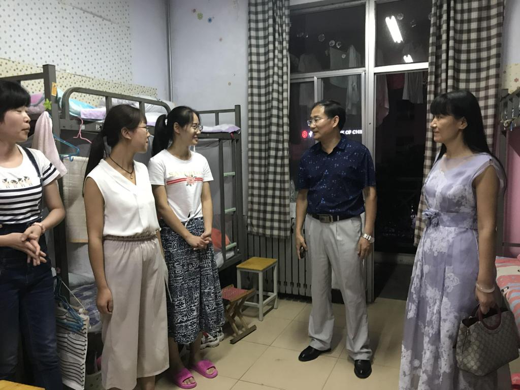 领导、辅导员老师怀着对新生入校后生活方面情况的关心,于9月9日晚走进四季花园四号楼新生宿舍探访慰问18级研究生新生。