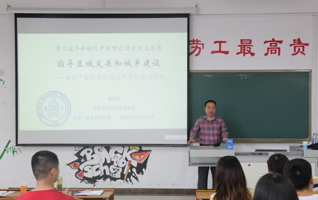 主办的“经纬讲堂”之高端论坛——“用习近平新时代中国特色社会主义思想指导区域发展和城乡建设”学术报告会于S403成功举办。北京师范大学地理科学学部吴殿廷教授担任主讲人。学院教授委员会主任代合治教授主持了此次报告会,吕晓,刘志刚、贾维花、谭丽荣、赵林、张学波、纪贵红、赵爽等老师出席,相关专业研究生、本科生共一百余人参加了报告会。