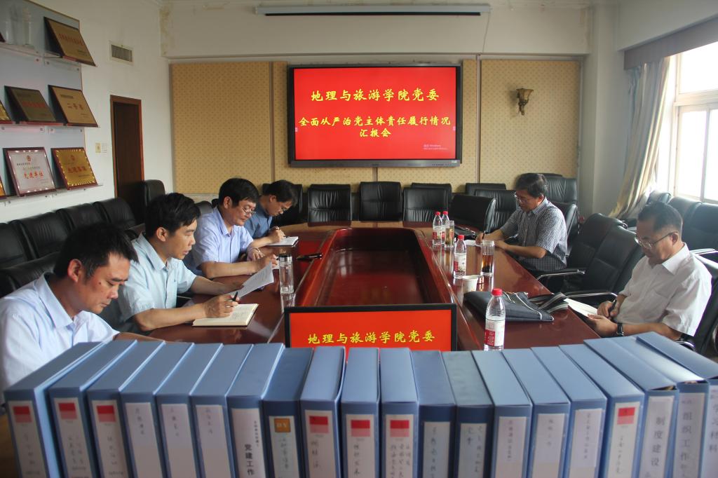 党风廉政建设责任书》确定的各项责任情况,以及学院近年来全面从严治党主体责任履行情况。张全景院长向徐思生书记汇报了学院师资队伍建设、专业规划、学科建设、科研及服务地方、人才培养、实验室建设情况。