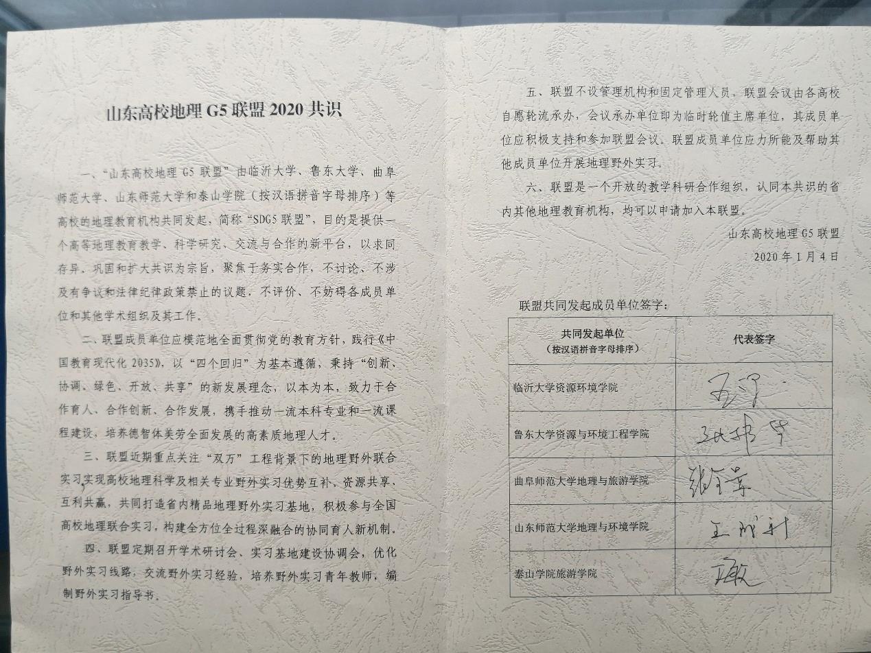 、山东师范大学、临沂大学和泰山学院5所高校的地理教育机构共同发起,简称“SDG5联盟”,目的是提供一个山东省高等地理教育教学、科学研究、交流与合作的新平台。