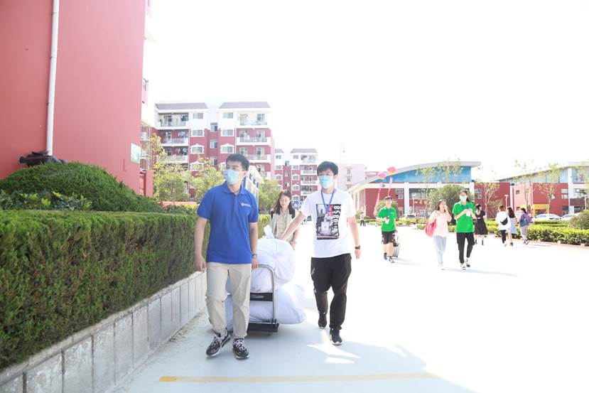 为了让所有新同学感受到如家一般的温暖,迎新的每一处细节都承载着老师们对学子们无微不至的关怀。集中报到点同时设置学院报到处与宿舍入住办理处,迎新工作人员有秩序的进行各项材料的核验、收集,并为新生发放学生卡,帮助新生办理宿舍入住手续。与此同时,学院安排老生与新生一对一对接,负责新生的行李搬运。全院所有在校研究生积极参与到这短暂又温暖的路程,从下车到报到处,从报到处到宿舍,一层层台阶,一滴滴汗水,处处彰显了曲园地理的真挚与热情。