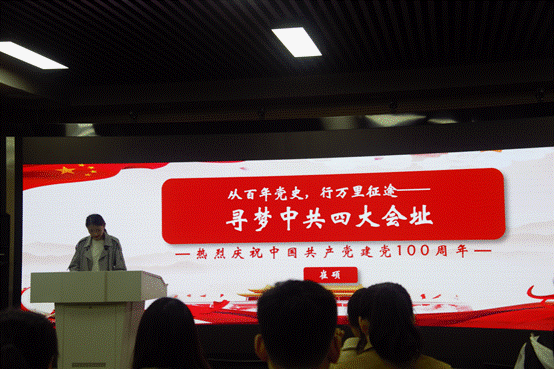 崔硕从中共四大纪念会址、中共四大的历史背景与召开过程、中国共产党第四次全国代表大会宣言、中共四大的历史意义四个方面全面系统地带领大家回顾了中共四大会议的有关内容。中国共产党第四次代表大会在今虹口区召开,在中国革命史上具有重要意义,在党的历史上第一次明确提出了无产阶级在民主革命中的领导权和工农联盟问题,第一次建设党支部。苏占兵强调,从党的奋斗发展史中可以体会到党支部在党的组织体系中的特殊地位,这次主题党日活动能够帮助大家对中共四大召开前后的历史背景有深入的了解,并希望大家能够在追忆历史中坚定理想信念,深刻体会实现中华民族伟大复兴的责任感和使命感。
