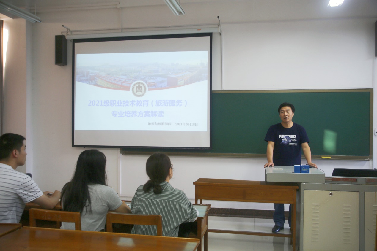 在S411、S412召开了2021级地理学专业、职业技术教育专业研究生培养方案解读会,专业解读会分别由副院长于伟和石峰副教授进行讲解,老师叮嘱同学们应提前进行学业谋划,珍惜宝贵学习时间,坚持理论学习与实践相结合,做好研究生期间规划。在老师细致耐心的解答下,同学们纷纷表示受益匪浅,对今后的研究生生活有了更好的把握。