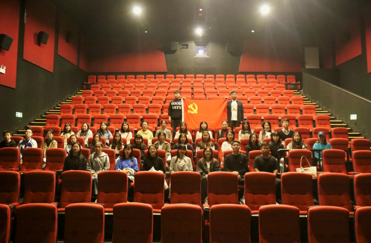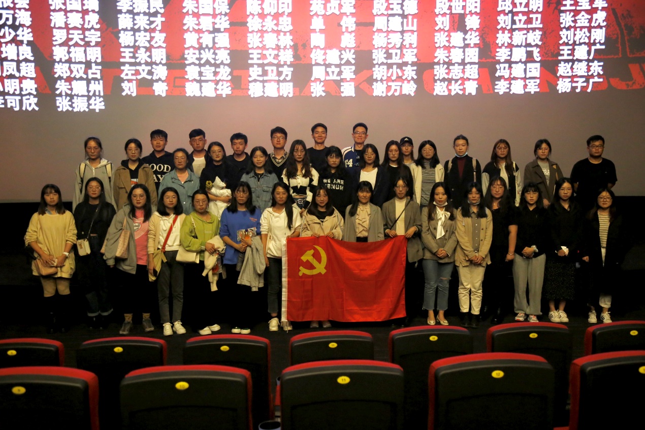 研究生党支部联合党建新媒体中心开展主题党日活动,研究生辅导员赵岩带领全体党员前往万达影城观看爱国主义教育影片《长津湖》。