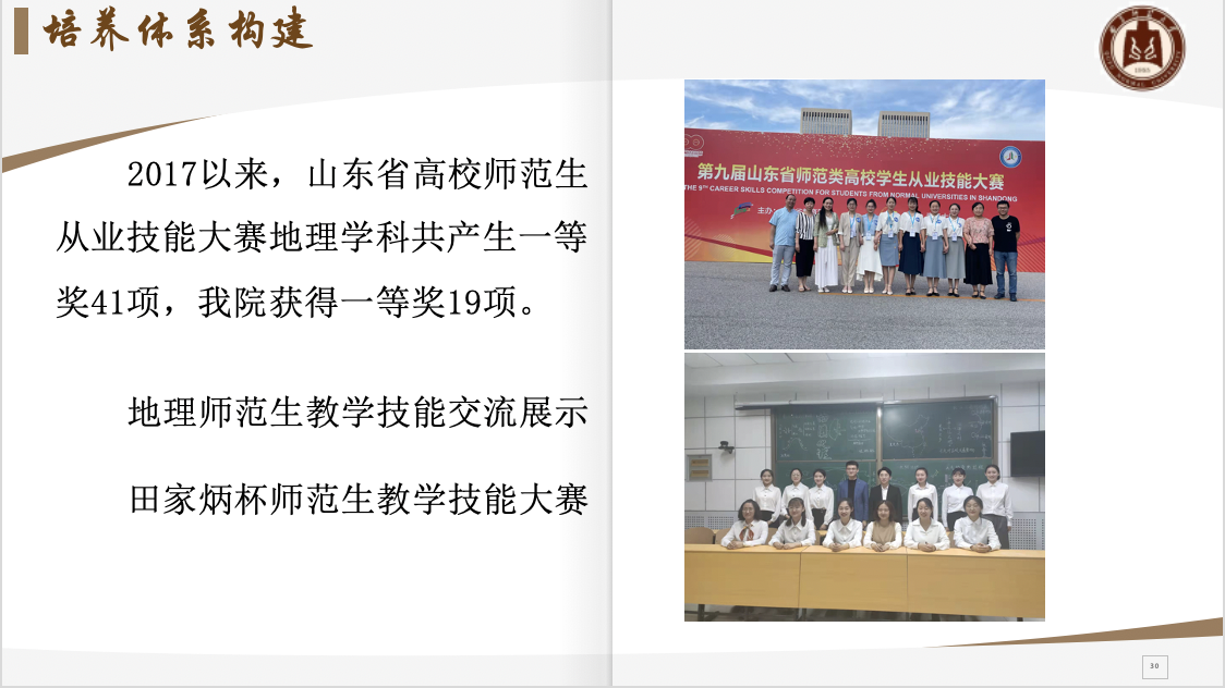 地理师范生的地理教学技能和教育理念不断进步,在全国地理师范生教学技能交流展示、田家炳杯师范生教学技能大赛、山东省高校师范生从业技能大赛、山东省地理教学技能大赛等一系列国家级和省级教学技能大赛中取得优异成绩。在该培养体系下,电影天堂