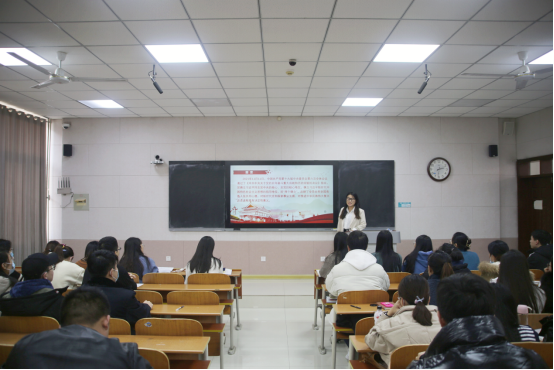 邀请马克思主义学院研究生马鑫蓓于JS213教室举行学习贯彻党的十九届六中全会精神宣讲活动。研究生辅导员赵岩、研究生党员和入党积极分子听取了报告。