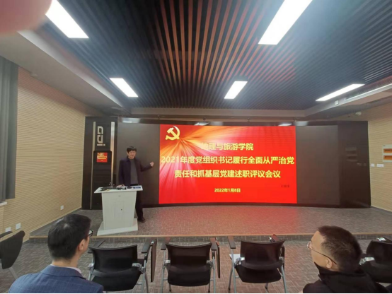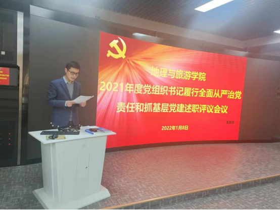 会上,教工党支部书记刘志刚,研究生党支部书记马振秀,本科生党支部书记田青分别从履职情况、存在的主要问题及原因、下步工作打算三个方面对2021年履行全面治党责任和抓基层党建进行了述职。