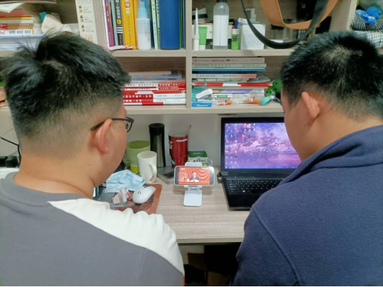 研究生党员与团员代表在学院虚拟仿真实验室共同观看大会直播盛况。