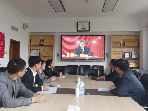 党委委员苏占兵、张全景、刘伟、吴军、于伟、刘志刚,重点建设办公室主任李宝富,教授代表廉丽姝、荆延德、孙小银、徐刚、贺山峰等在党员活动室集体观看了大会直播。