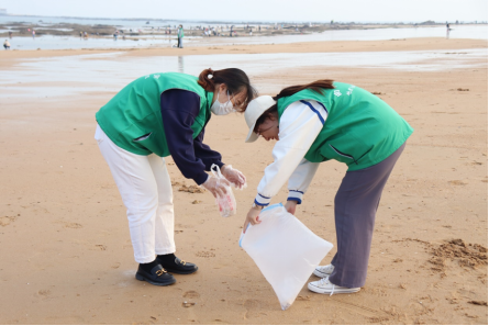 活动过程中,志愿者身穿绿色马甲,纷纷戴着手套,拎着白色垃圾袋,沿着海边一路清捡,逐一将食品包装袋、卫生纸、饮料瓶、烟头等垃圾全部放入准备好的垃圾袋中,经过奋战,装满了几大袋垃圾,并进行了集中处理。志愿者们用一次次弯腰拾捡的行动,践行着志愿服务精神和绿色环保精神,引得不少游客投来赞许的目光,并主动加入到队伍中,一起捡拾垃圾。活动结束后大家纷纷表示,垃圾拾捡无小事,点点滴滴皆绿色,作为新时代的青年,我们应为黄河流域生态环境保护,传承和弘扬黄河文化贡献自己的青春力量。