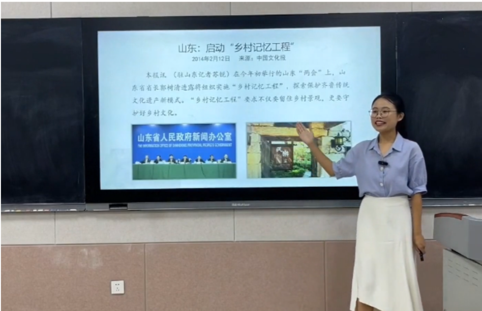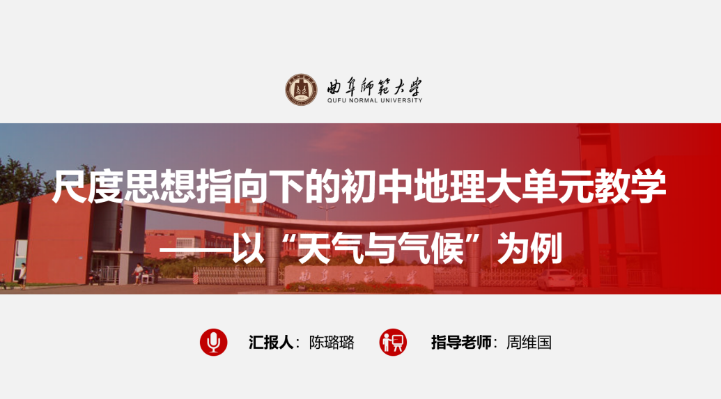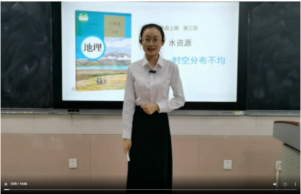 硕士研究生陈璐璐、于钰、袁诗梅、张淑君分别展示交流了《尺度思想指向下的初中地理大单元教学——以“天气与气候”为例》、《大概念指引下“河流地貌”概念体系的构建》、《基于耗散结构理论的地理过程性知识教学特征分析及策略研究》、《基于核心素养的跨学科融合教学研究——以时空秩序为例》等研究成果。教学展示环节,本科生张鸿超线上展示了《地域文化与乡村景观》的授课过程,本科生张欣茹线上展示了《水资源—时空分布不均》的授课过程。