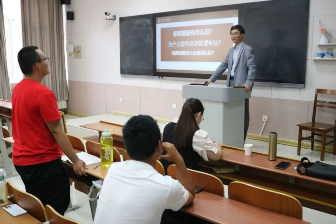 旅游管理专业的发展历史,发展定位和特色。鼓励同学们认识到大学学习生活的重要意义,并回顾了学院人才培养取得的成绩,分享了一些校友的成功案例,激励同学们读万卷书,行万里路。接着,吴军副院长解读了培养方案,强调了培养目标和毕业要求。他希望同学们不仅要掌握旅游管理专业所需的知识和实践技能,更要具备自我发展、自我拓展的任职资格、职业素养和能力要求。最后,吴军鼓励新生们要“朝碧海而暮苍梧,睹青天而攀白日”“达人所之未达,探人所之未知”,怀揣着对诗和远方的热爱,努力学习,为国家经济社会发展贡献自己力量。