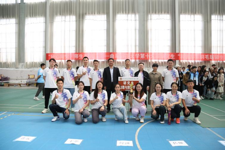 取得一等奖的好成绩! 赛毕,学校对本次羽毛球赛给予了高度的评价与鼓励,学校领导对获奖队伍颁发了奖杯并合影留念。