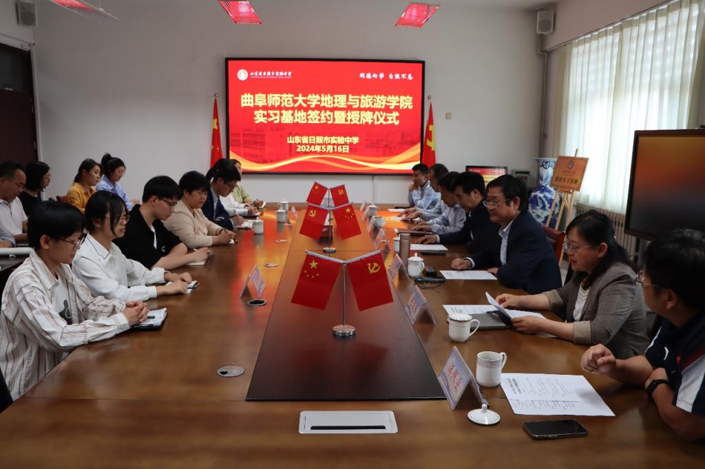党委书记苏占兵、院长张全景一行前往日照市实验中学签订教育实习基地协议并授牌。日照市实验中学党总支书记尹力群、校长许崇梅、东港区地理教研员孙兆志、各位实习指导老师及实习学生参加活动。