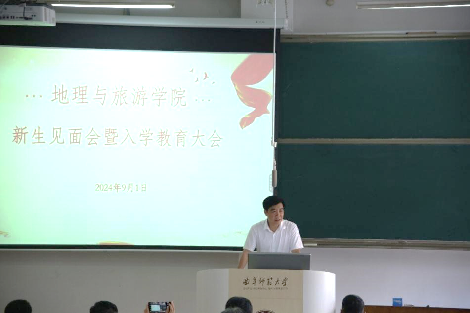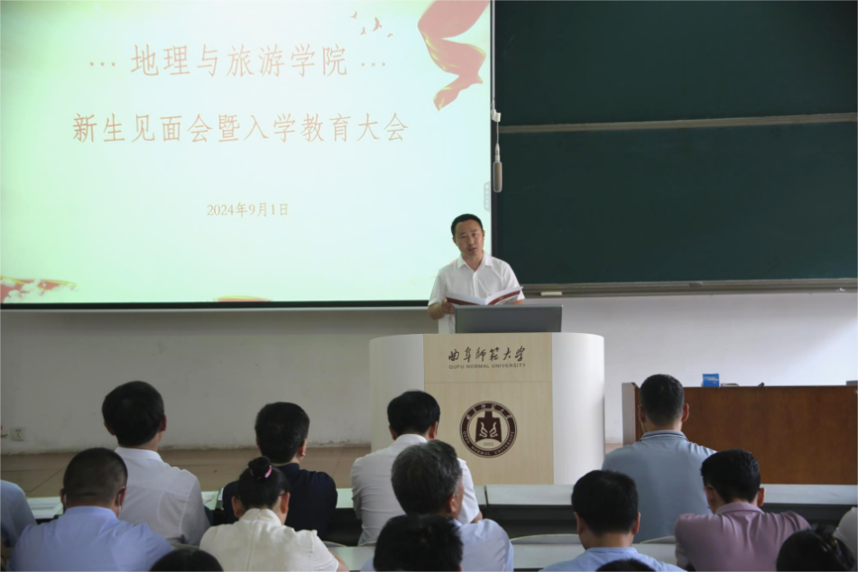 会上,张全景院长以《立地弘文求大成 攀登科学新高峰》为题,为全体新生上了开学第一课。张院长以“圣地学府,儒风海韵——认识我们的曲园”为引子,引领新生们穿越电影天堂