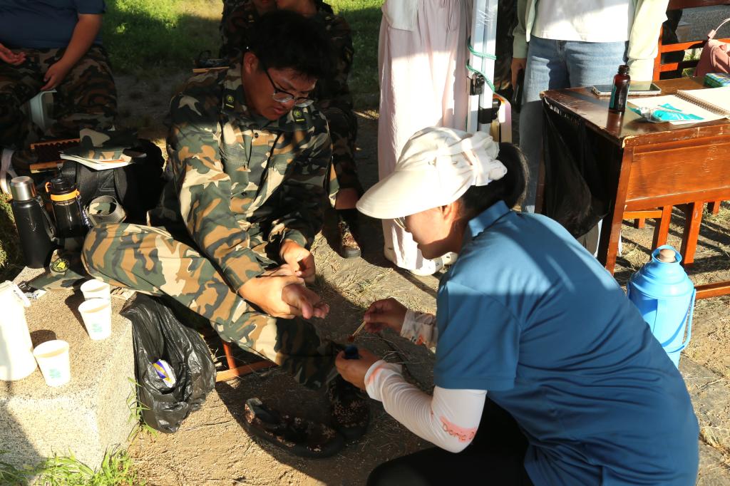 党委副书记刘伟及辅导员张乃宁、公惟莹询问见习同学身体情况