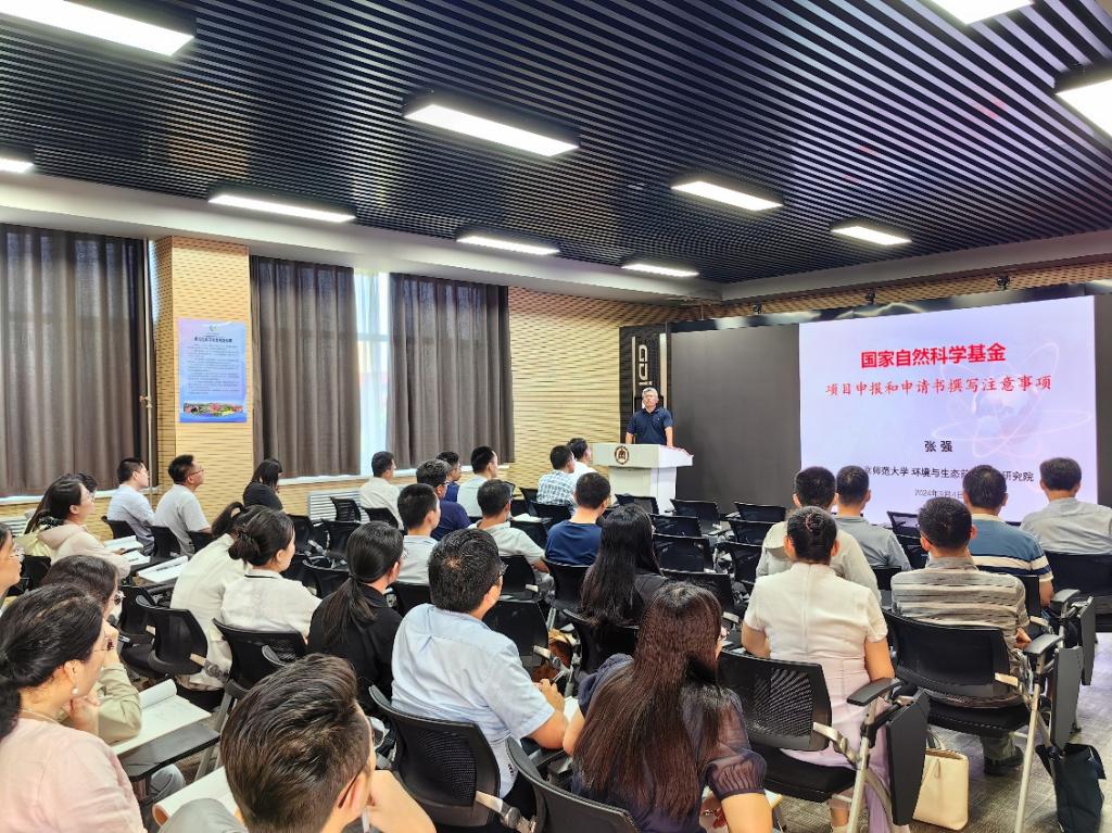 教师作国家自然科学基金项目申报辅导报告。会议由院长张全景教授主持,学院全体青年教师参加了报告会。
