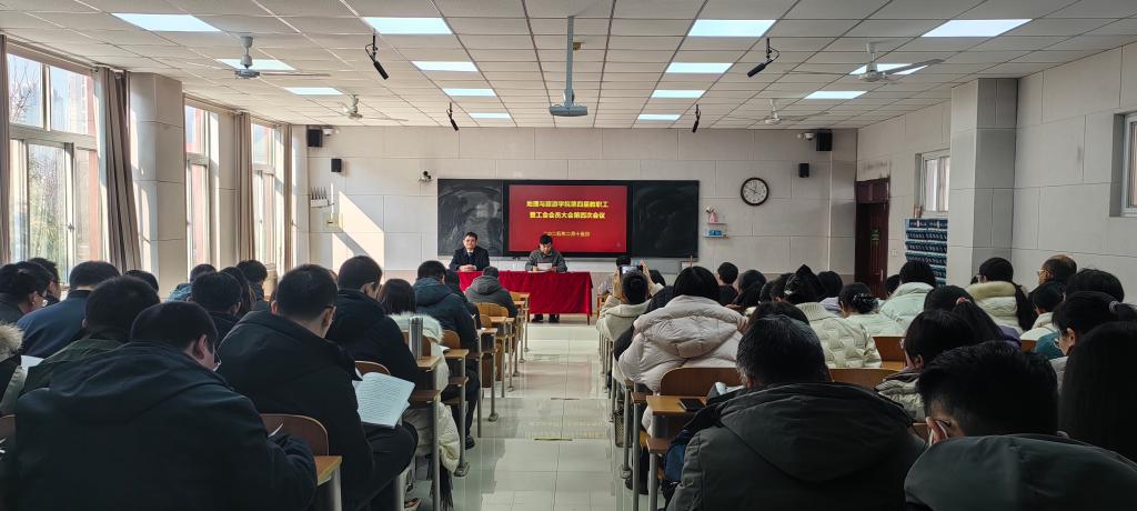 张全景同志在报告中指出,2024年,全院师生认真学习贯彻党的二十大和二十届二中、三中全会精神,认真落实学校党委的决策部署,积蓄力量、继往开来,开拓创新、拼搏奉献,持之以恒立地弘文,凝心聚力奋发图强,较好完成了各项任务,取得了可喜成绩。一是党建领航学院发展。学院党委全面加强党的建设,牢牢把握意识形态领导权,扎实开展党纪学习教育,以“全面从严治党示范学院”“课程思政示范学院”建设为契机,以“党政共同负责制”运行机制为统领,以党建和业务工作深度融合为主线,以“理论联学、阵地联享、业务联研、发展联动、活动联办构筑党建共同体”为抓手,党建引领高质量发展成效显著。二是专业建设成效显著。坚持一流专业任务导向,较好完成了三个本科专业人才培养方案修订,圆满完成了地理科学师范专业教育部二级认证专家进校考查;3个专业全部上榜软科2024年中国大学专业排名,其中地理科学和旅游管理专业再获“B+”评级,土地资源管理专业获得B评级。获批山东省一流本科课程1门,推荐参评国家级一流本科课程2门;获批山东省教改课题1项、课程思政示范项目1项,联合获批山东省普通本科高校重点领域教学改革试点项目1项;获得学校教学成果奖特等奖1项、一等奖3项,教师教学创新大赛一等奖3项、二等奖1项。三是学科建设聚力推进。锚定地理学一级学科博士学位授权点目标,以申报条件和要求为引领,强化自然地理学、人文地理学、地图与地理信息科学、自然资源调查与国土空间规划学四个方向的学科特色和队伍建设,全方位提升学科影响力和竞争力;全员参与,分工协作,认真开展地理学、旅游管理、学科教学(地理)、职业技术教育(旅游服务)学位点审核评估工作。四是师资队伍进一步优化。学院现有教职工93人,其中专任教师80人,本科生生师比17.1:1,青年教师快速成长,朝气蓬勃、担当作为,在教学科研和社会服务中积极进取,成绩显著、引人瞩目,这是学院向好向强发展的强大基础和动力源泉。师资结构进一步优化,2024年新晋副教授5人,当前教授13人、副教授34人,专任教师中博士生导师8人、72人具有博士学位、19人具有海外学习经历,博士占比远超学校平均比例。学界和社会影响进一步提升,6位教师入选“2024中国知网高被引学者TOP1%”、13位教师入选“2024中国知网高被引学者TOP5%”,入选人数占全校总入选人数的22.7%;1人获评山东省教学名师,1人担任中国地理学会理事,1人担任山东省智库专家,在各类学术组织任职的教师近20人。五是平台建设持续发力。与比利时根特大学、中国科学院新疆生地所联合共建、成功签约“中比地理信息联合实验室”;获批山东省普通高等学校地理科学实验教学示范中心、山东省普通高等学校示范性实习(实训)基地(国土利用与信息化产教融合示范性基地)、山东省普通高等学校示范性基层教学组织(电影天堂