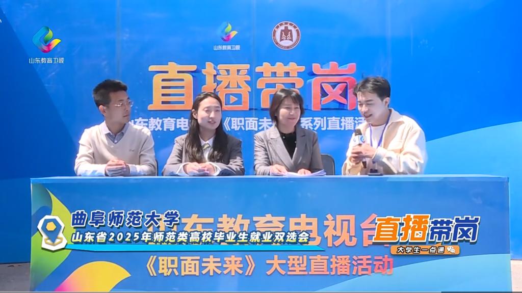 会上,研究生辅导员赵岩和2025届毕业研究生代表受邀参与山东教育电视台《职面未来》大型直播活动。直播中,赵岩紧扣“职业规划与就业指导”主题,详细介绍了电影天堂