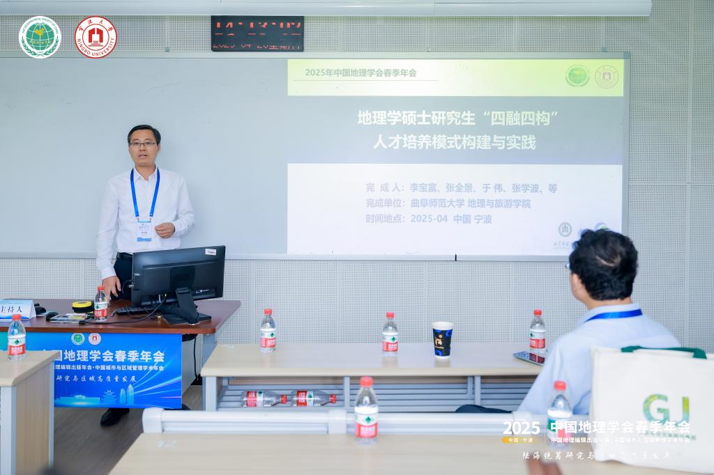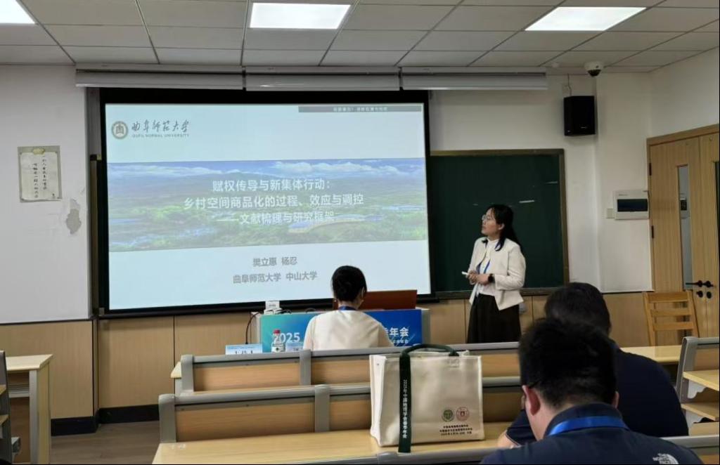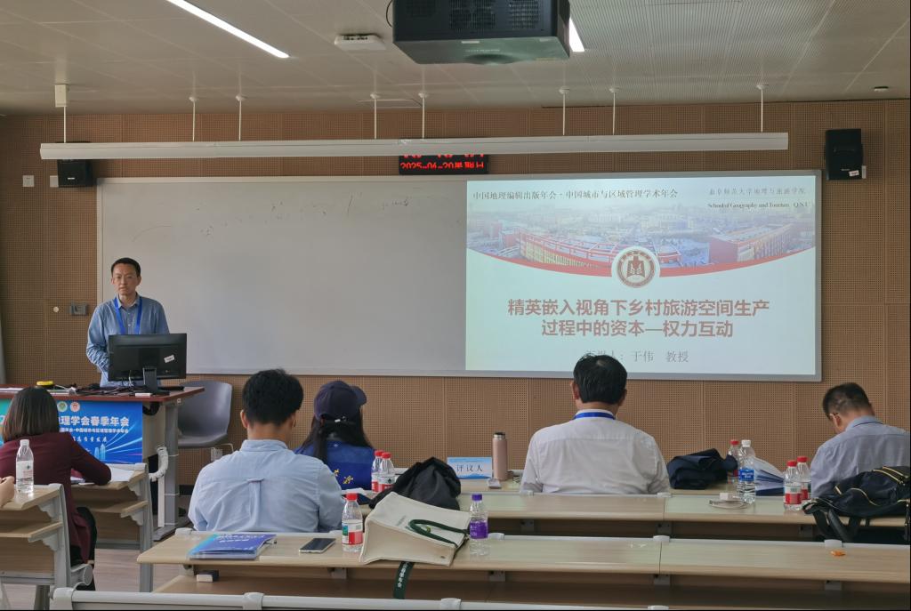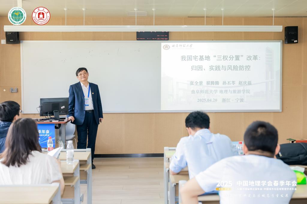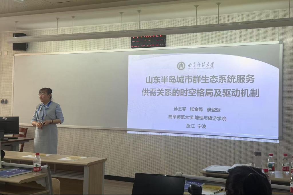 会议期间,张全景教授和于伟教授在“城乡融合与乡村可持续转型”分会场分别作了题为《我国宅基地三权分置改革:归因、实践与风险防控》《精英嵌入视角下乡村旅游空间生产过程中的资本—权力互动》的报告,同时张全景院长作为该分会场的评议人对参会专家的报告进行了现场评议;李宝富教授在“地理学研究生教育”分论坛作了题为《地理学研究生“四融四构”人才培养模式构建与实践》的学术报告;孙丕苓副教授在“生态系统健康与可持续发展”分会场作了题为《山东半岛城市群生态系统服务供需关系的时空格局及驱动机制》的学术报告;樊立惠老师在“要素双向流动与乡村振兴路径”分会场作了题为《中国乡村空间商品化的治理创新与机制重构》的学术报告;李梦程老师在“黄河流域水-生态-城市-产业协同发展”分会场作了题为《“形流融合”视角下沿黄三大城市群空间结构演变驱动减污降碳协同效应的机制与路径》的学术报告;李永格老师在“服务荒漠化综合防治的沙漠科学”分会场作了题为《基于生态系统服务的河西地区生态安全格局构建及其优化策略》的学术报告;硕士研究生侯登登在“西部人地关系与农户可持续生计”分会场作了题为《生计分化视角下农户家庭能源消费行为特征及驱动因素研究——基于沂蒙山区调研数据的实证分析》的学术报告。