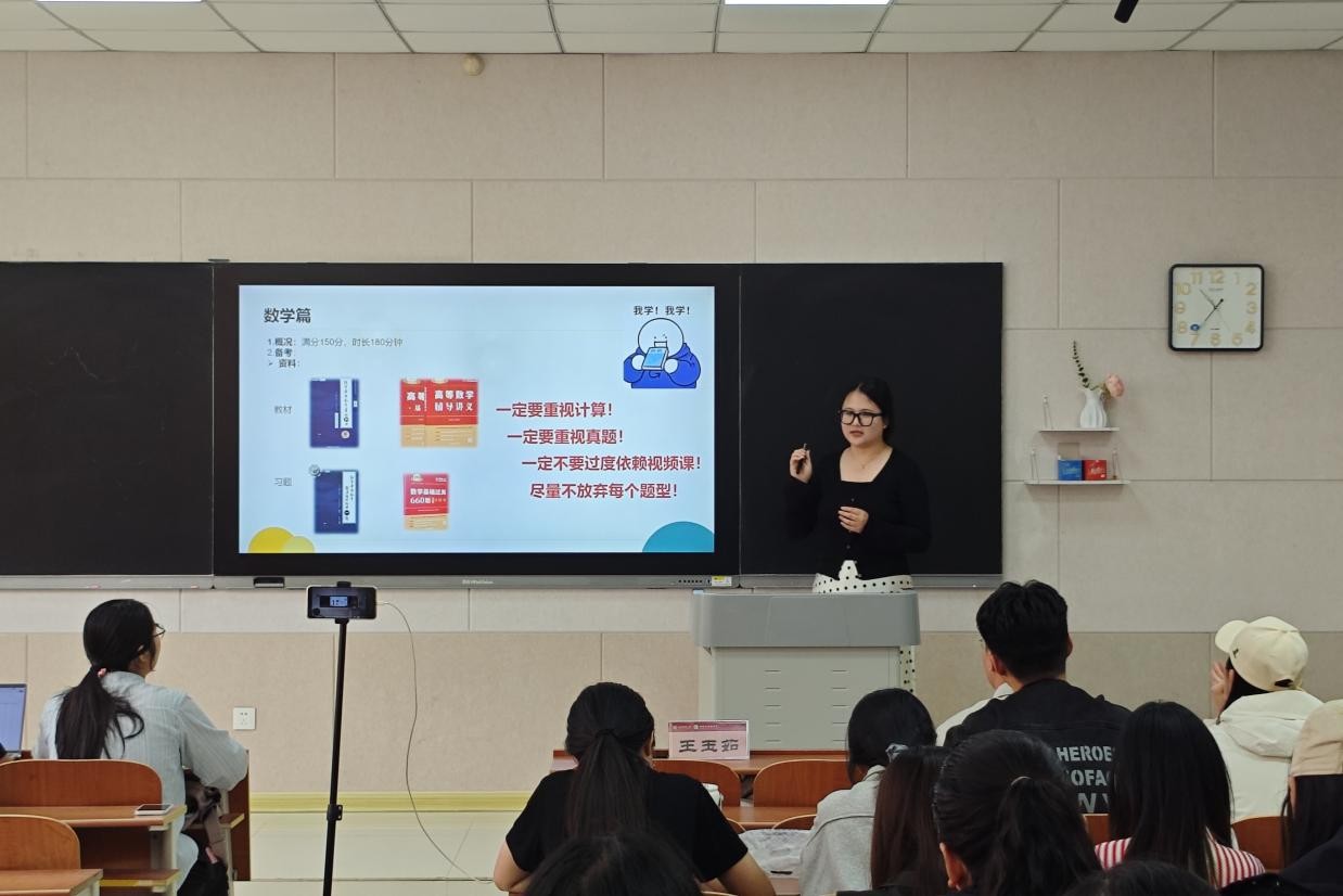 516日,召开地图学与地理信息系统、跨专业专场,邀请袁雨霞、刘宁、石鑫红进行经验分享,他们强调同学们在复习时要回归课本大纲,透彻解读相关参考书目,夯实基础知识,及时整理章节框架;生态学与环境地理学专场邀请陈佳艺、邵明阳、王天乐进行经验分享,他们结合备考时的身心感受,分享缓解压力的方法;在自然地理学专场中,王玉茹、张广宇、王怡霏、孙金玉应邀进行经验分享,他们提醒大家提前抵达目标院校熟悉适应环境,通过模拟面试等方式优化临场表现,要注重简历的精准性与本科阶段科研实践成果的展示。