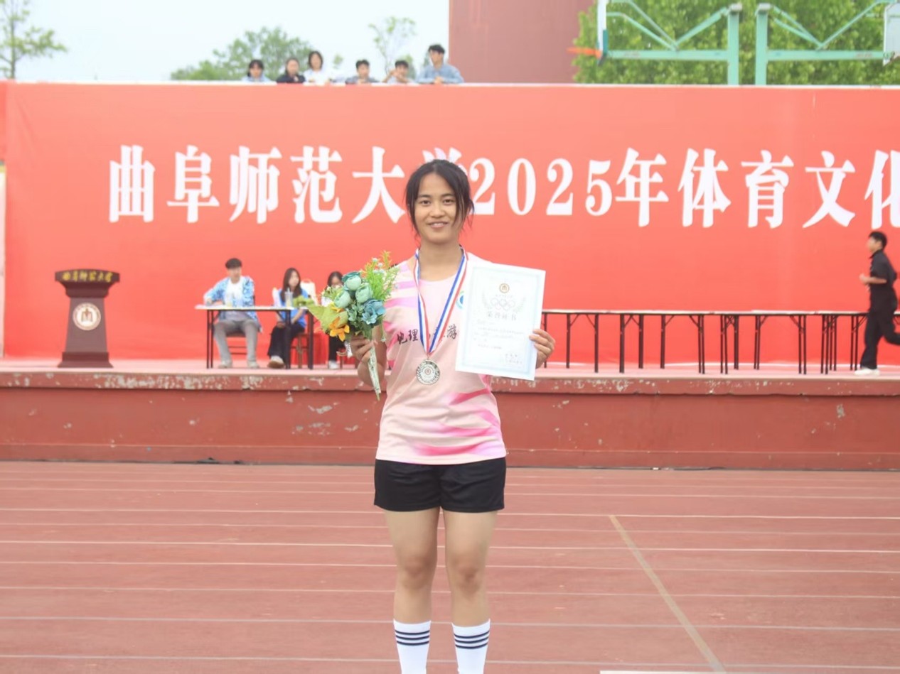 取得优异成绩:李欣瑞荣获女子跳远第一名、钟宗润荣获男子5000米第一名、李双荣获女子跳高第二、赵超越荣获女足吊圈第二名、者正枨荣获女子1500米第二名、张荣俊荣获运球射门第二名、齐晓晓荣获女子跳高第三名、鲍建乐荣获男足吊圈第三名、朱德翠荣获垫排球入筐第三名、学院旱地龙舟女子组荣获第一名、旱地龙舟男子组荣获第二名、学生组男子荣获4×100米第三名。在全体师生的共同努力下,学院荣获团体总分第三名,获得体育道德风尚奖、体育先进单位称号。