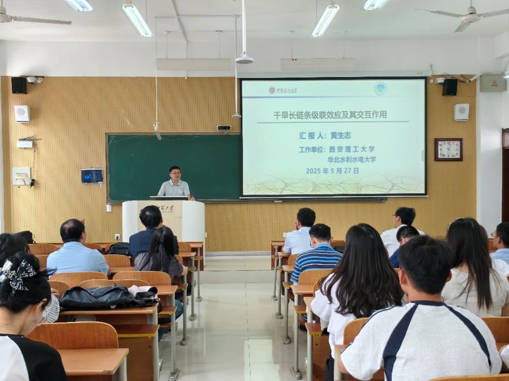 特邀国家万人青拔、华北水利水电大学水利学院院长黄生志教授做客“经纬讲堂·高端讲坛”,为学院师生作了题为《干旱长链条级联传递及其交互作用》的学术报告。学院相关教师及研究生参加报告会。报告会由电影天堂