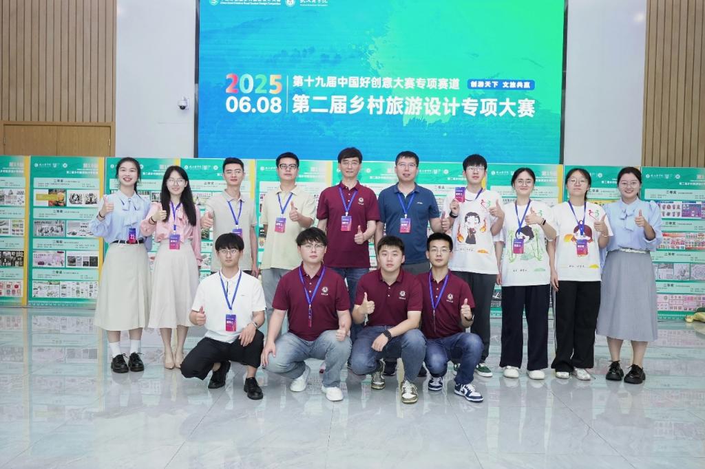 赵岩、吴军老师指导的作品《“渔”你慢行,“乡”见美好》(学生团队:周子傲、张硕、李欣冉、付豪、张莉颖等)和孟令冉、吴军、梁甜甜老师指导的作品《山东省日照市后魏家村乡村旅游目的地规划》(学生团队:成涛、刘哲、苗颢峰、马晨旭、冷尚宇)以优异成绩获“乡村旅游目的地规划设计赛道”一等奖。张瑜、田青老师指导的作品《古韵新“香”》(学生团队:吕心宇、张梦濡、于心雨、马雨晴、孙千惠等)以优异成绩获“乡村土特产艺术赋能设计赛道”一等奖。潘涛、孟令冉、李梅老师指导的作品《奇山守艺非遗韵,千户兴旅古村情》(学生团队:石琳、何佳临、韩珺浠、王晶、王中贞等)获“乡村旅游目的地规划设计赛道”二等奖。